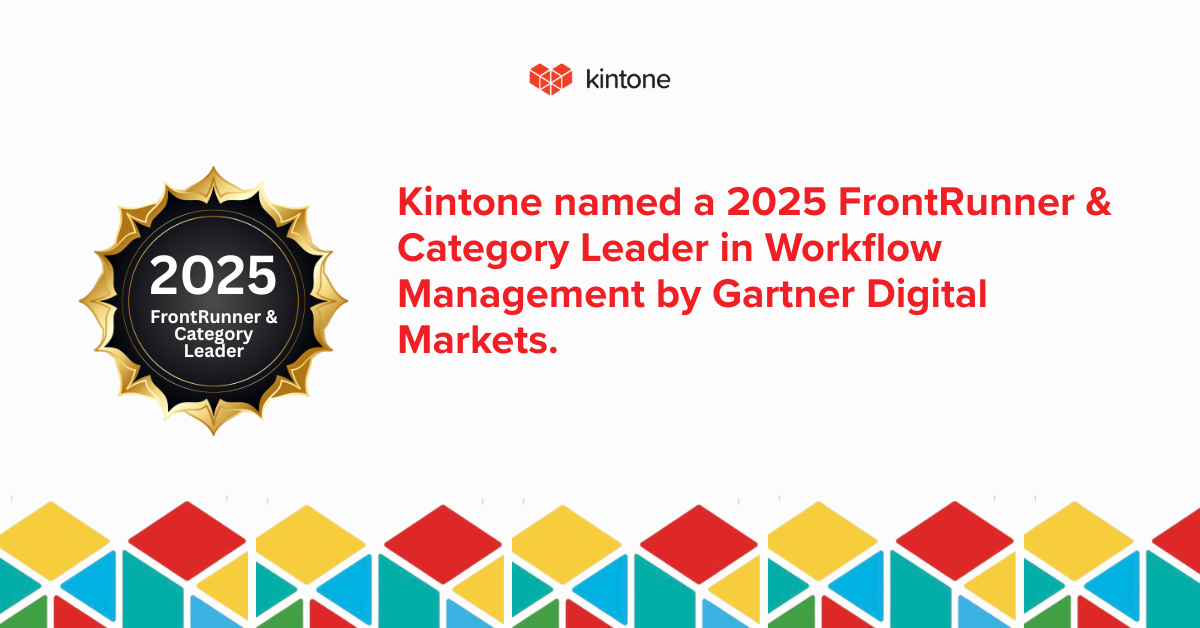 Gartner Digital Markets recognized Kintone as a 2025 FrontRunner and Category Leader in Workflow Management across Software Advice and GetApp. These recognitions reflect customer trust, positive review ratings, and consistent feedback about Kintone's ability to simplify workflows and help teams stay organized. With an average rating of 4.7 out of 5 across more than 150 verified reviews, Kintone continues to be valued for its flexibility, ease of use, and dependable customer support.