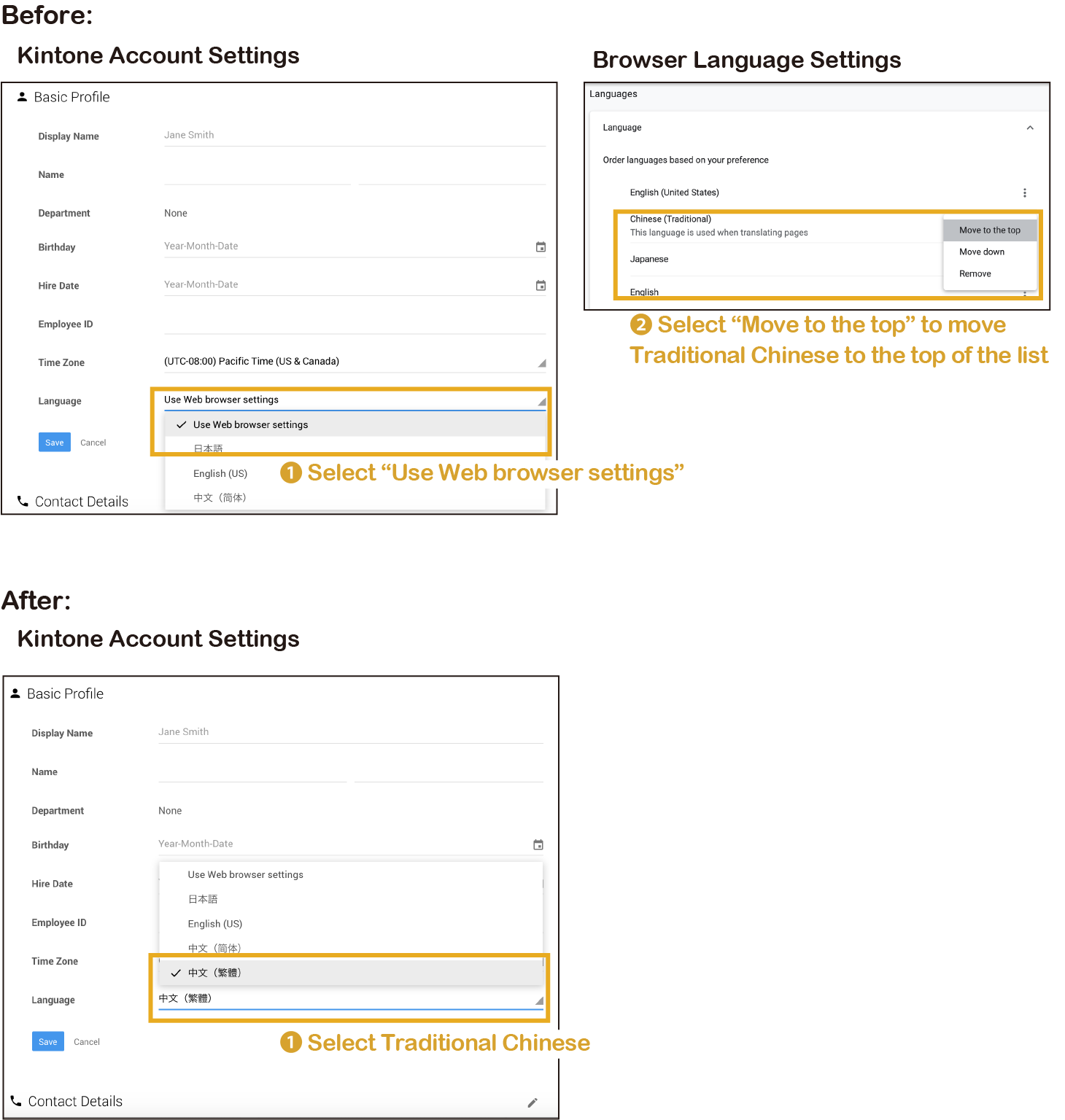 Traditional Chinese can now be selected from the Language drop-down list in the account profile settings.